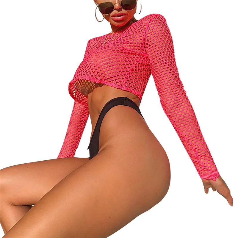 Женские прозрачные сетчатые кроп-топы в сеточку, футболка, Пляжное ...