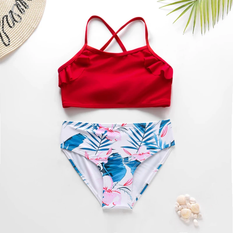 Купальники для девочек 2021, купальник из двух частей с воланом, большие размеры на 6-16 лет, комплект танкини, Новое поступление 2021, детский купальник