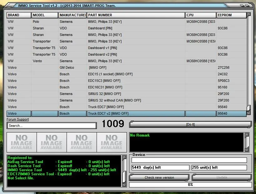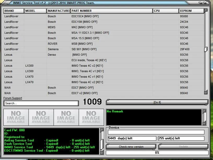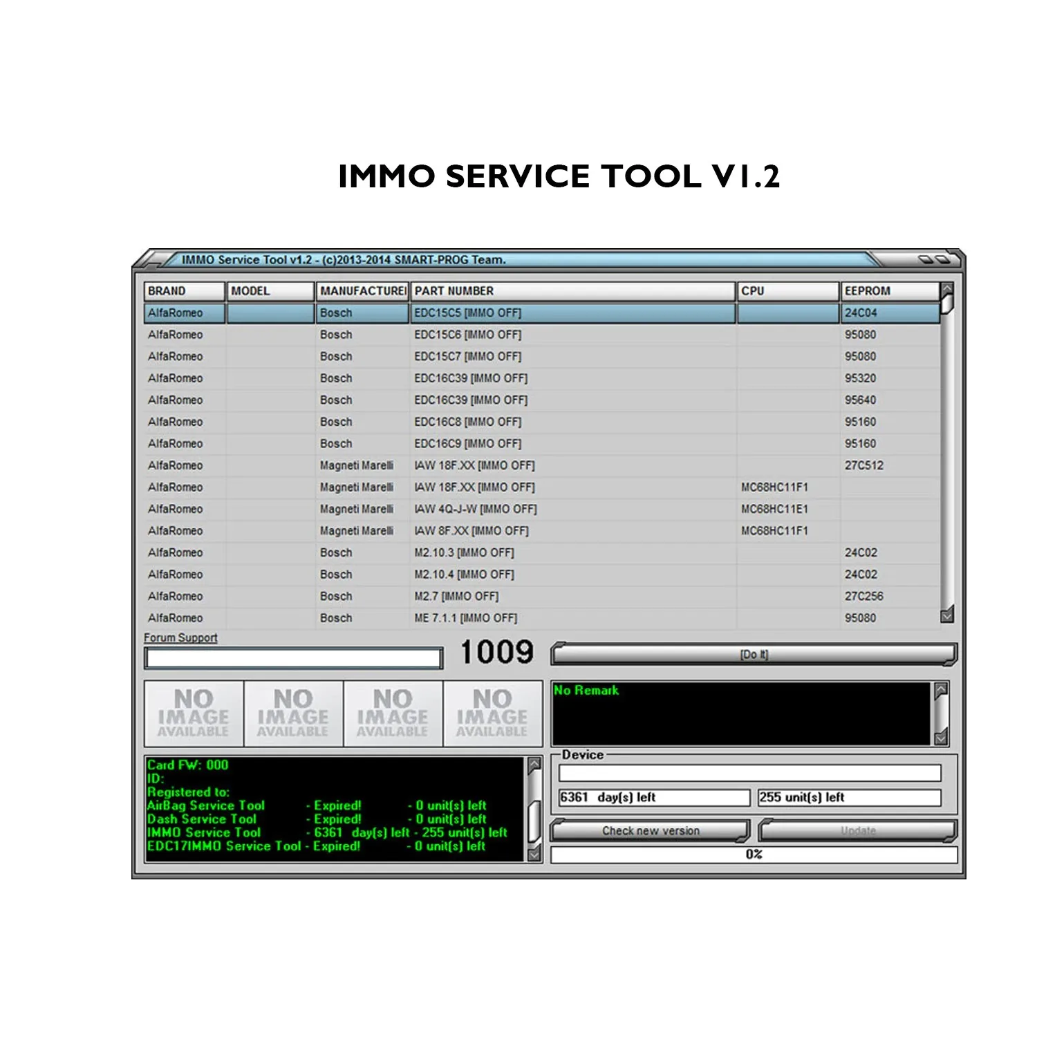 Разработчик оборудовния №.IMMO SERVICE TOOL V1.2