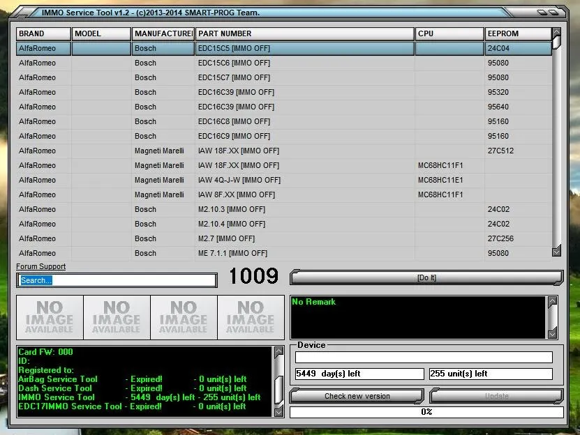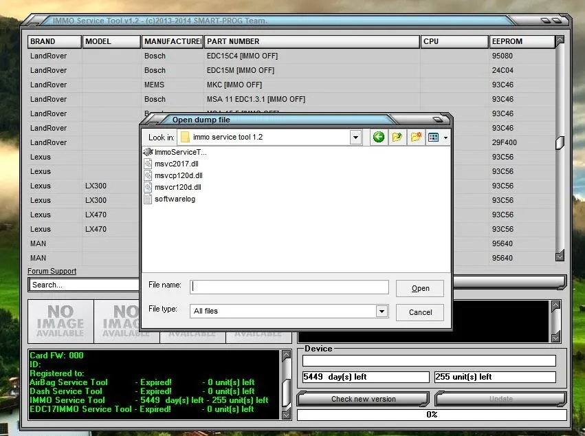 Примечание: этот список представляет собой только ссылку на программное обеспечение для IMMO SERVICE TOOL V1.2!