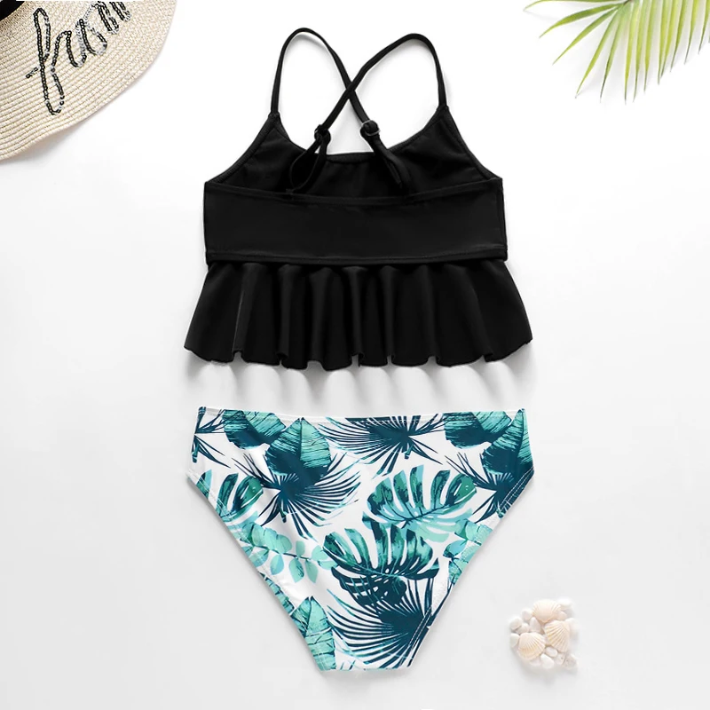 Купальники для девочек 2021, купальник из двух частей с воланом, большие размеры на 6-16 лет, комплект танкини, Новое поступление 2021, детский купальник