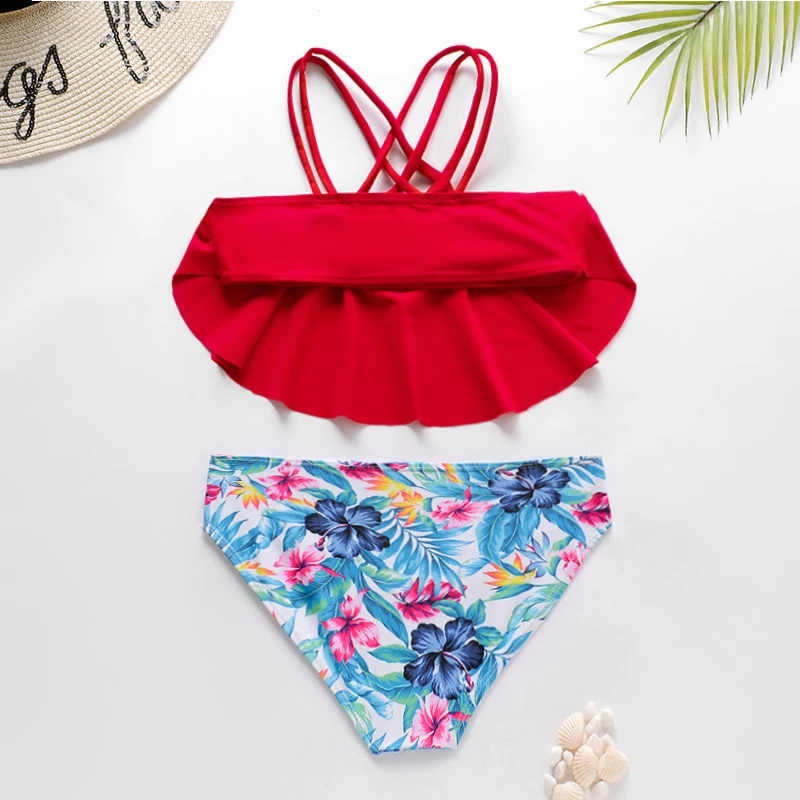 Купальники для девочек 2021, купальник из двух частей с воланом, бо...