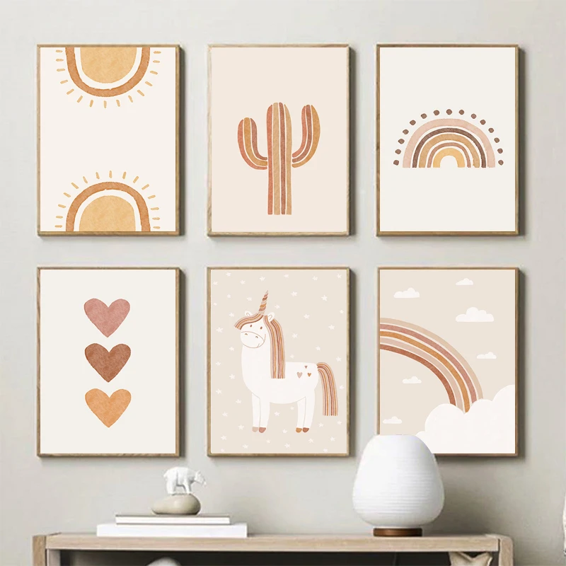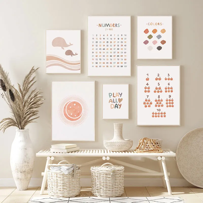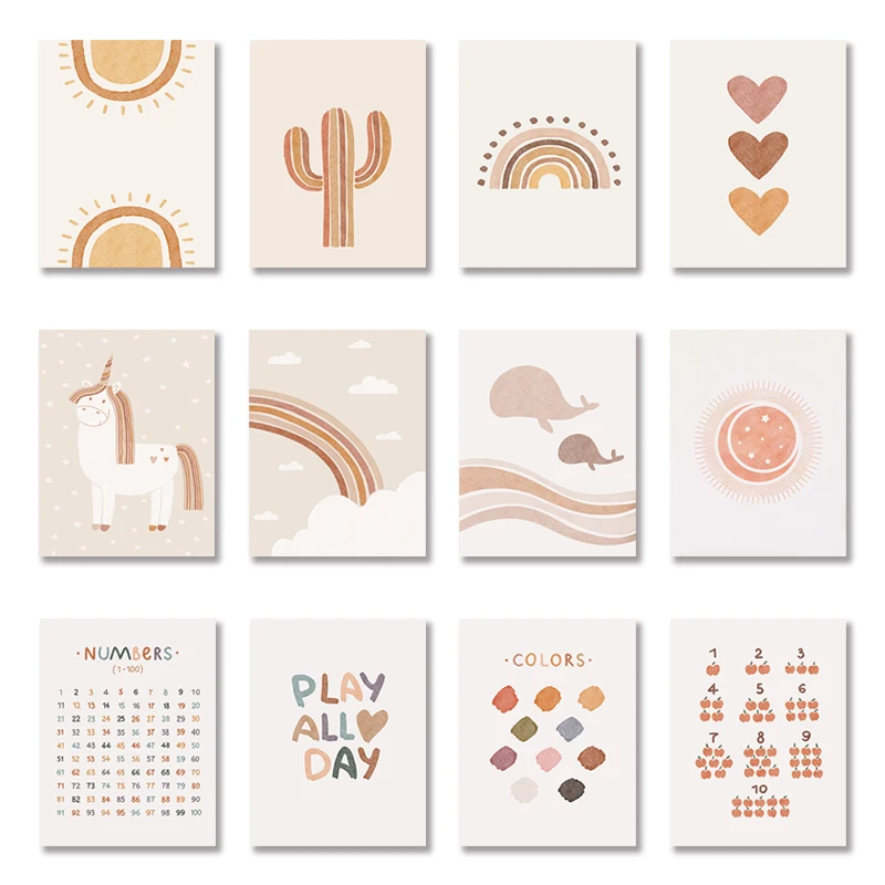 Радуга Алфавит цифра Солнце Луна настенная живопись холст скандинавские постеры и образование печать настенные картины декор для детской комнаты