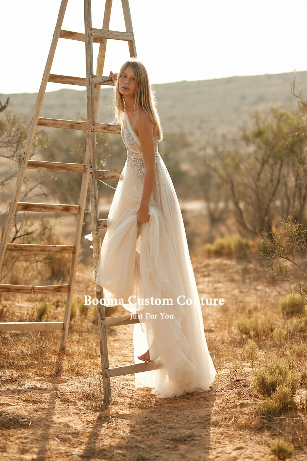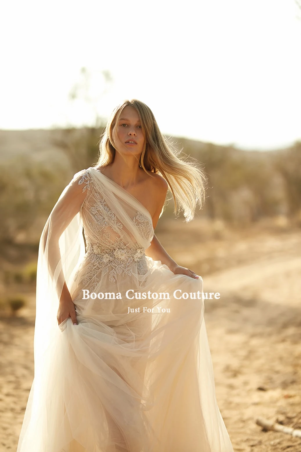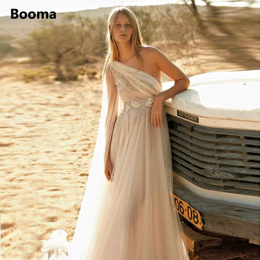 Пляжное свадебное платье Booma на одно плечо, кружевное платье-трапеция со шлейфом и открытой спиной в стиле бохо для невесты