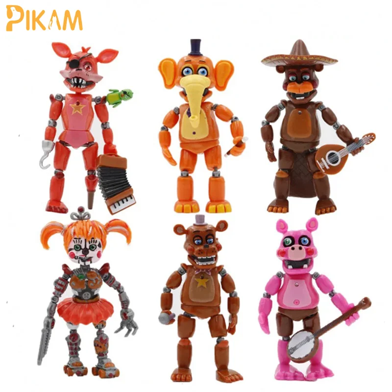 Игрушечный медведь FNAF Five Nights Midnight, игрушечный симулятор пиццерии Ver Foxy Chica Lighte с подвижными суставами, детские игрушки, подарки 6 шт.компл.