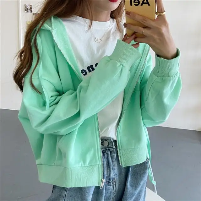 Толстовка Женская в стиле Харадзюку, на молнии, однотонная