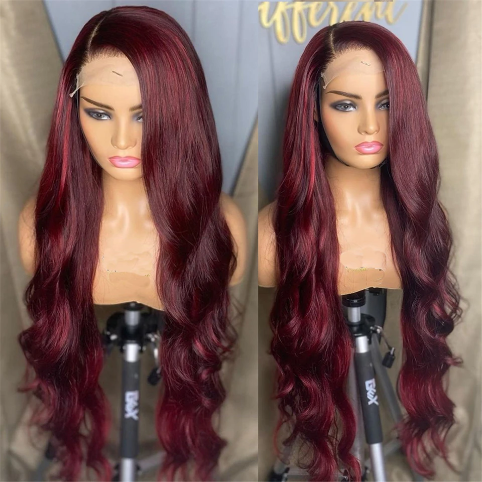 Парик из человеческих волос 99j с красными волнистыми волосами 13x 6, парик из предварительно выщипанных волос с эффектом омбре, бразильские волосы Remy, бордовые, светлые, фронтальные парики для черных женщин