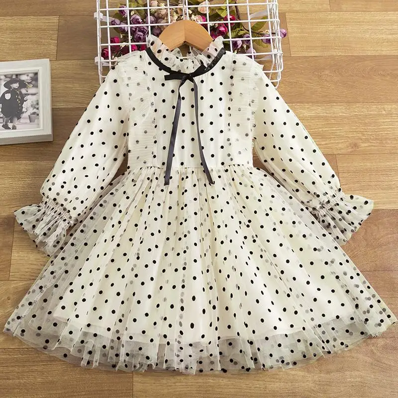 Платье принцессы в горошек для девочек, детское зимнее элегантное праздвечерние чное платье с длинным рукавом, Детские повседневные платья для свадьбы