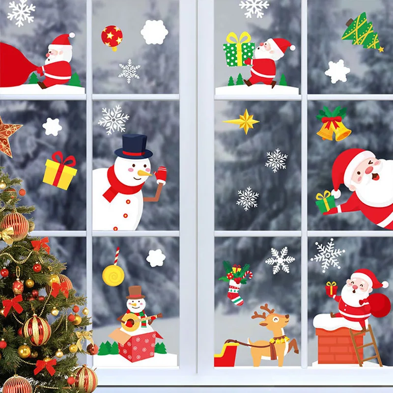 Счастливого Рождества съемные двусторонние статические настенные наклейки Рождественский Декор для дома стеклянные наклейки новогодние домашние наклейки
