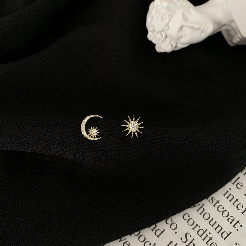 Серьги-гвоздики женские, желтые, золотистого цвета Луна Звезда, солнце, циркон, Kpop