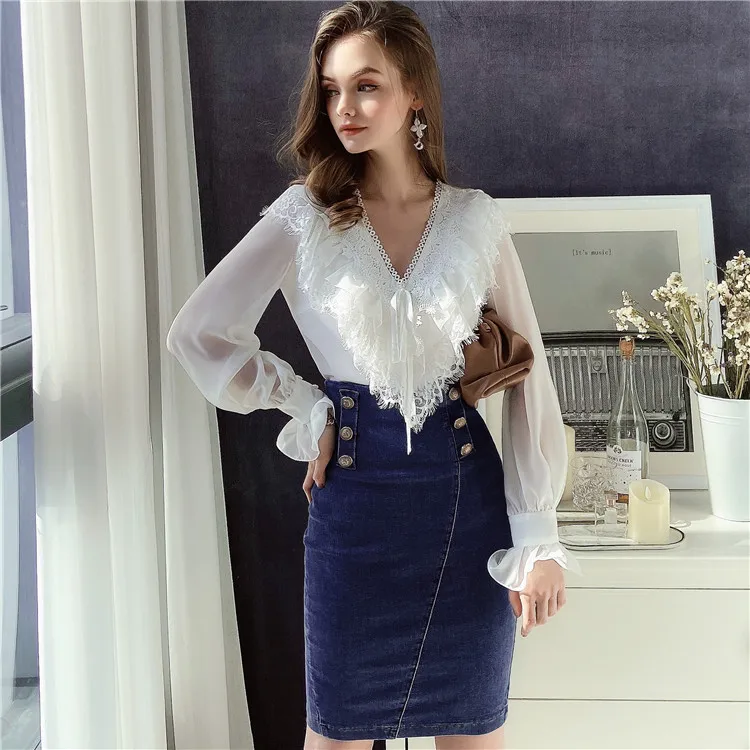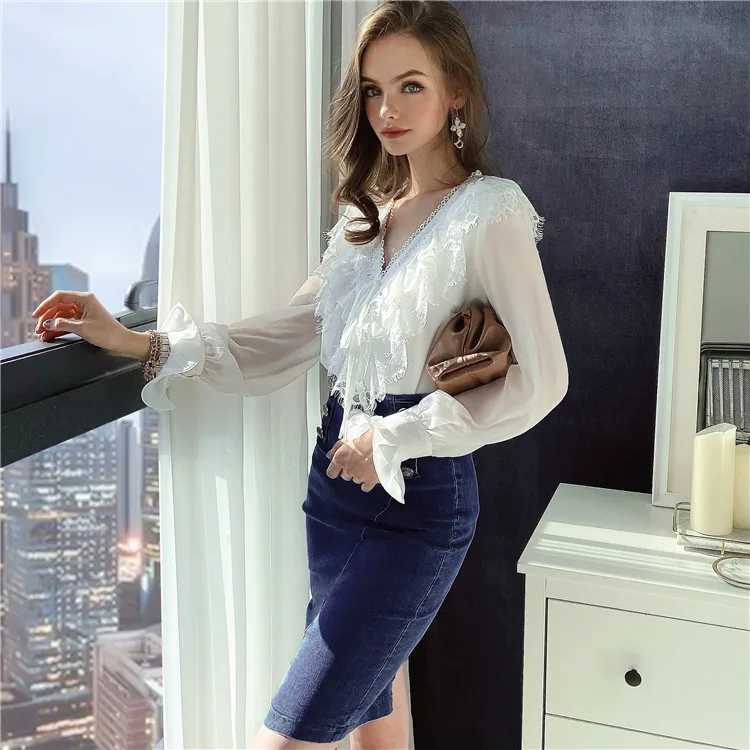 Женская винтажная блузка Dabuwawa, белая блузка с расклешенными рук...