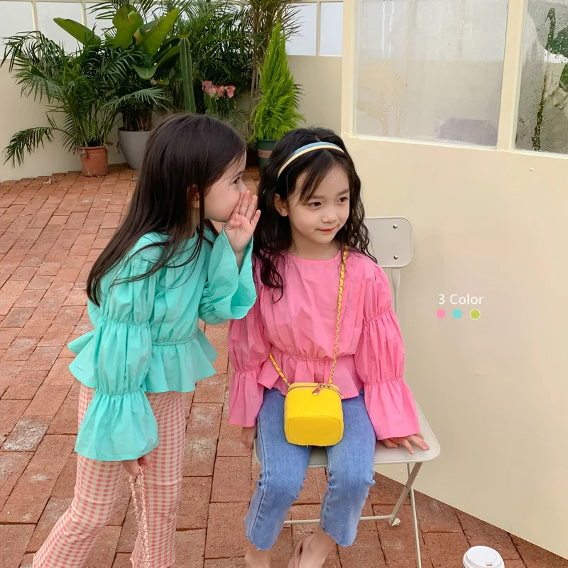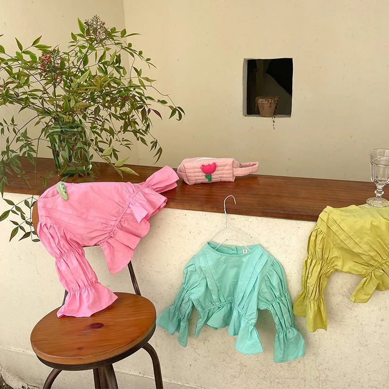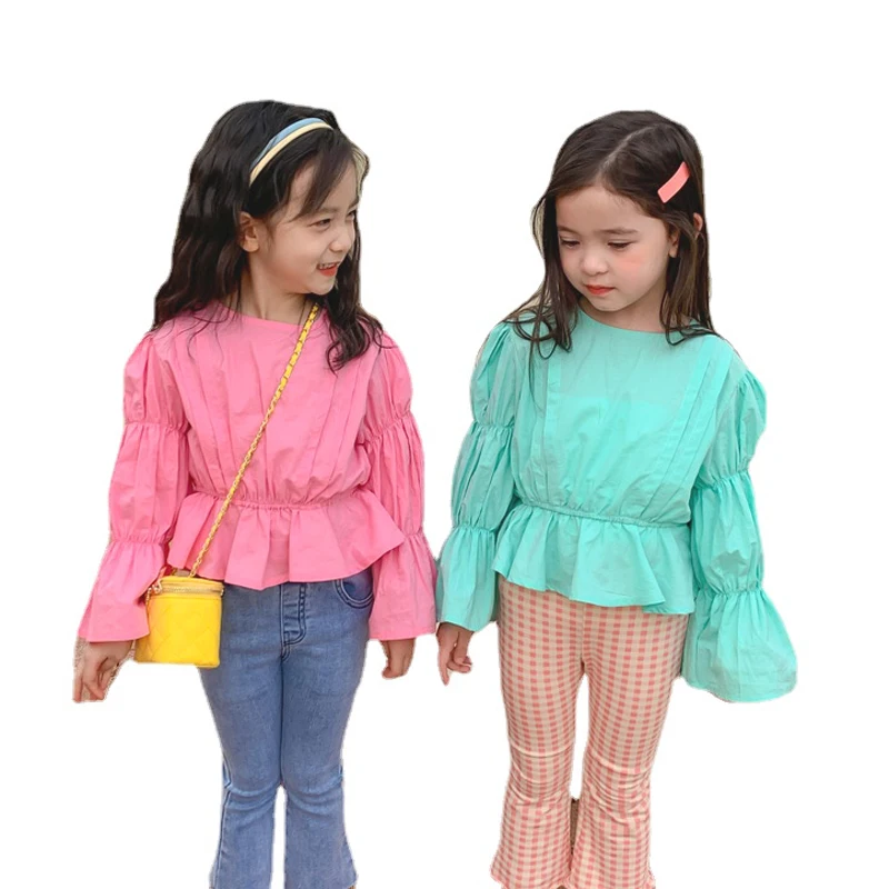 Новинка Весна 2022, блузка, рубашки, модная детская одежда для малышей для девочек, с пышными рукавами, детская одежда, подходит для детей ростом 90-140 см