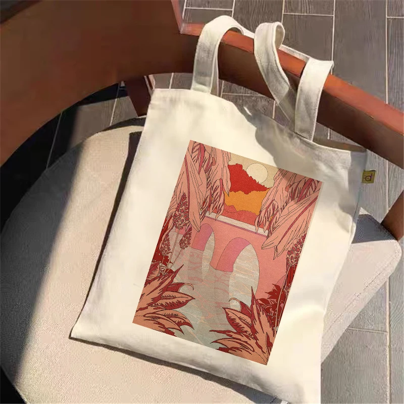 Холщовая розовая сумочка для покупок для девочек с рисунком маслом,...