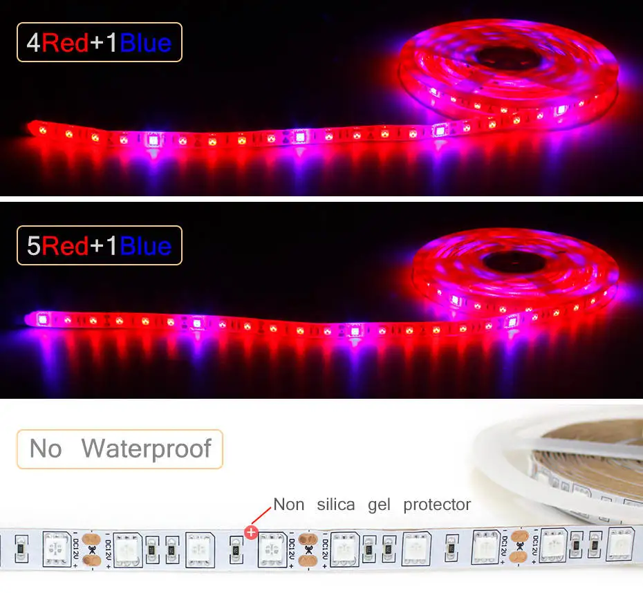 Скорость IP:IP65/IP20Светодиодный Тип:SMD 5050Количество СВЕТОДИОДНЫЙ:60 светодиодов/мЦвет: красный и синий (красный: синий = 3:1, 4:1 или 5:1)Светодиодный Длина волны: Красный: 660нм; Синий: 450нмНапряжение: 12 В постоянного токаМощность:8 Вт/м, 36 Вт/5 мДлина:5 м(Светодиодная лента припаивается из частей, упакована с 5 м, не проблема качества)Особенности:Энергосбережение с более высокой эффективностью. HPS,HID,MH, лампа накаливания и галогенная лампаПолный спектр, необходимый и критичный для выращивания и цветения растений (от посева до сбора урожая)450нм синий и 660нм красный ускоряет рост листьев660нм красный способствует цветениюИдеально подходит для выращивания коробок, палаток для выращивания, Гидропоники DIY, бонсай, сада и т. д.Удобные, гуманистические и высокоэффективные