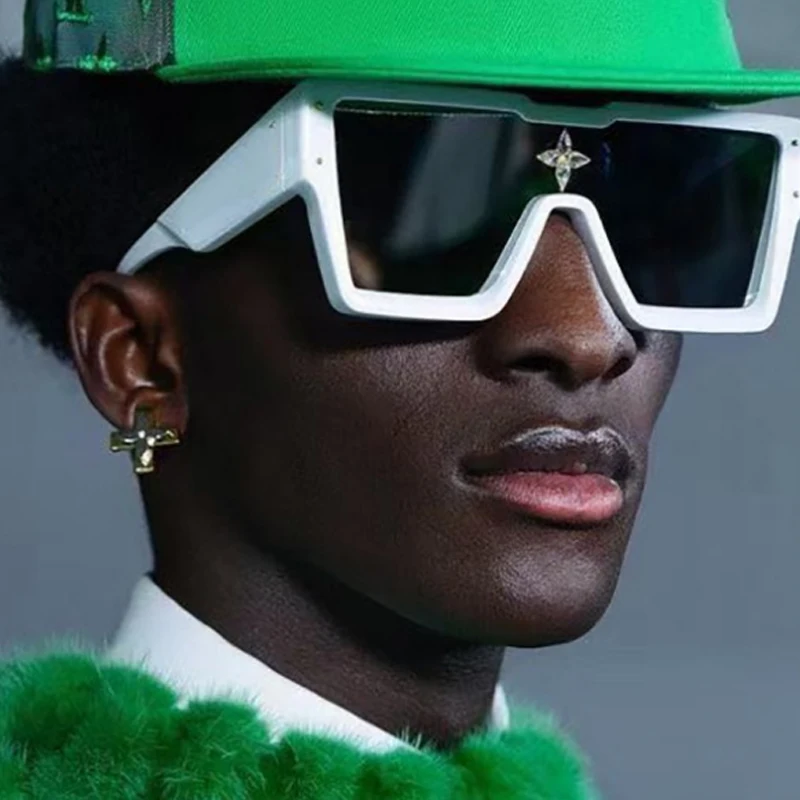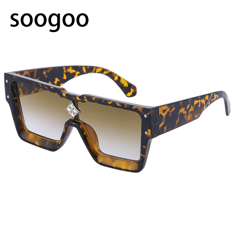 Очки солнцезащитные мужскиеженские в винтажном стиле, квадратные брендовые дизайнерские солнечные очки большого размера с бриллиантовыми цветами, 2021