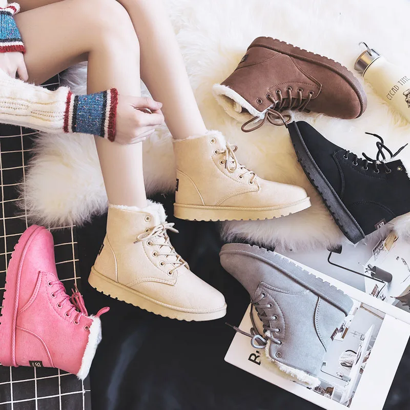 Женские замшевые ботильоны, универсальная хлопковая обувь, зимние Бархатные ботинки для снега