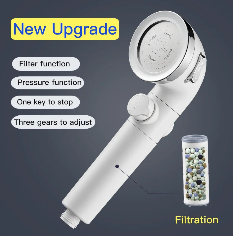 Ручная душевая лейка, Сменный фильтр высокого давления, 3 режима ра...