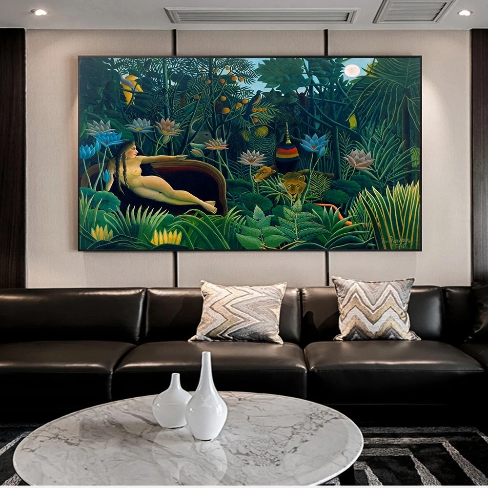 Картина на холсте с изображением сурреалиста Анри Руссо мечта обнаженной женщины тропические лес природные животные домашний декор искусство