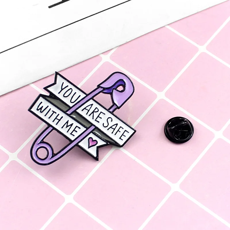 Металлическая Булавка You are safe me purple брошь с иконкой, детск...