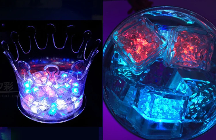 Светоизлучающие кубики льда, состоящие из материалов PS и электронных компонентов, обладают яркостью при попадании в воду (индукция жидкости), а внешний вид похож на настоящие кубики льда. Внутри продукта светодиодный светодиодная электроника, без химических изменений, безвредна и может помещаться во все виды напитков, чтобы создать романтическую и таинственную атмосферу. Он широко используется в различных праздничных мероприятиях, барах отелей и других местах.