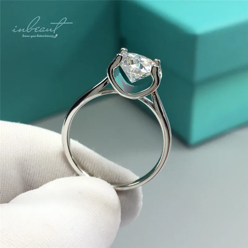 Круглое Сверкающее кольцо inbeaut с муассанитом, кольцо из 925 проб...