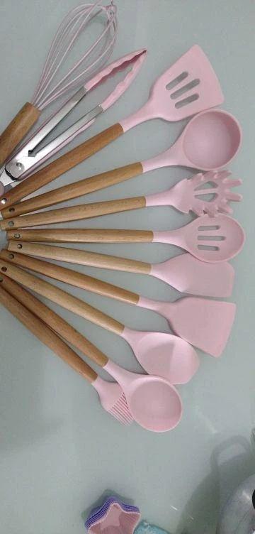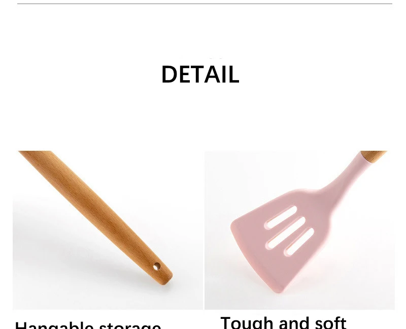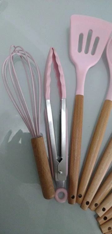 Защита окружающей среды, нетоксичный, термостойкий, антипригарный, прочный, безопасный, легко чистится продукты для кухонной посудыПодходит: микроволновая печь, тостер, пароварка, можно варить и стерилизовать.Материал: силикон + дерево из натуральной акацииЦвет: розовыйРазмер: как на фото