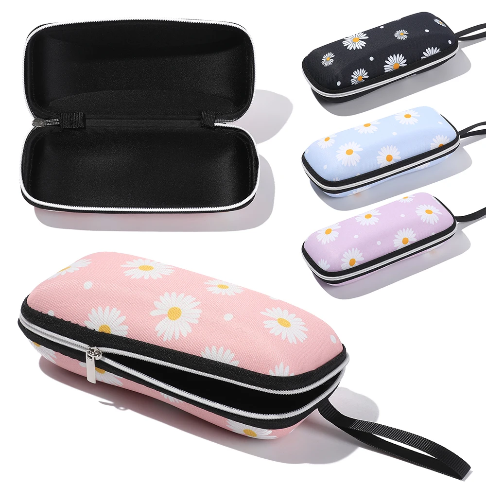 2021 модная коробка для свежих очков с ромашками, большая емкость, Водонепроницаемый Чехол для очков EVA на молнии, винтажный портативный держатель для очков