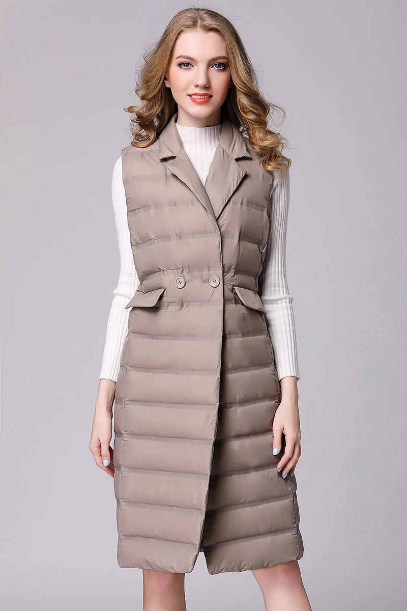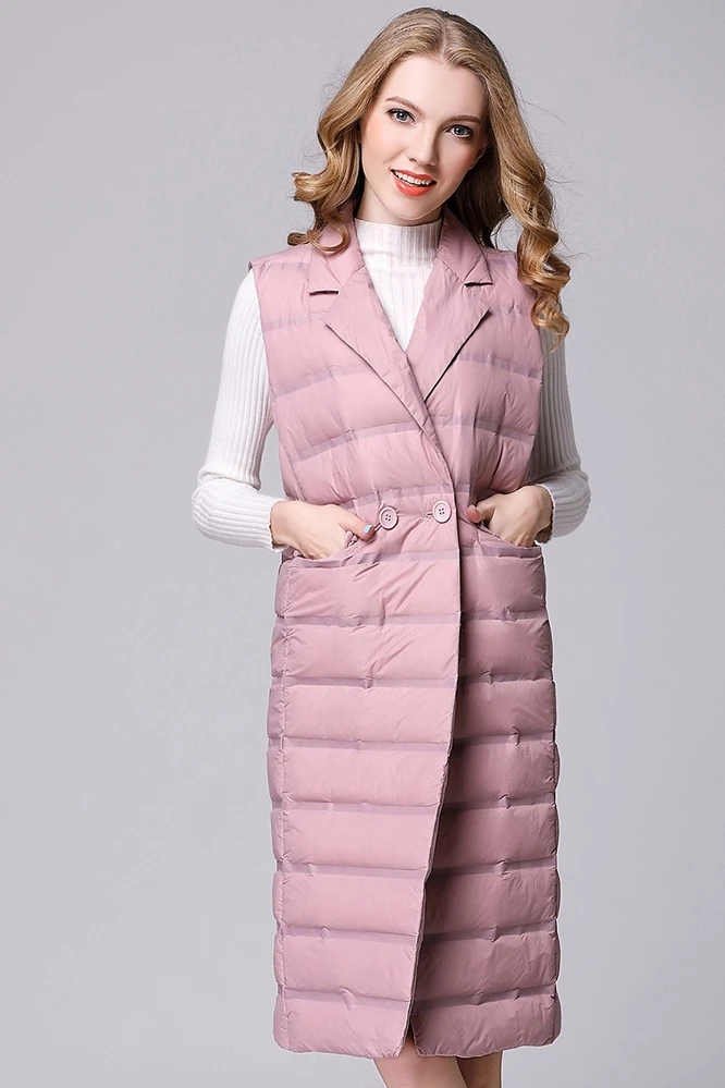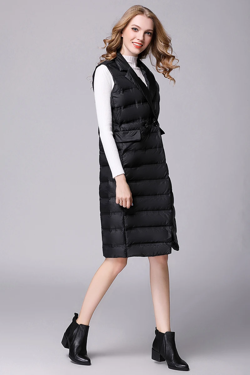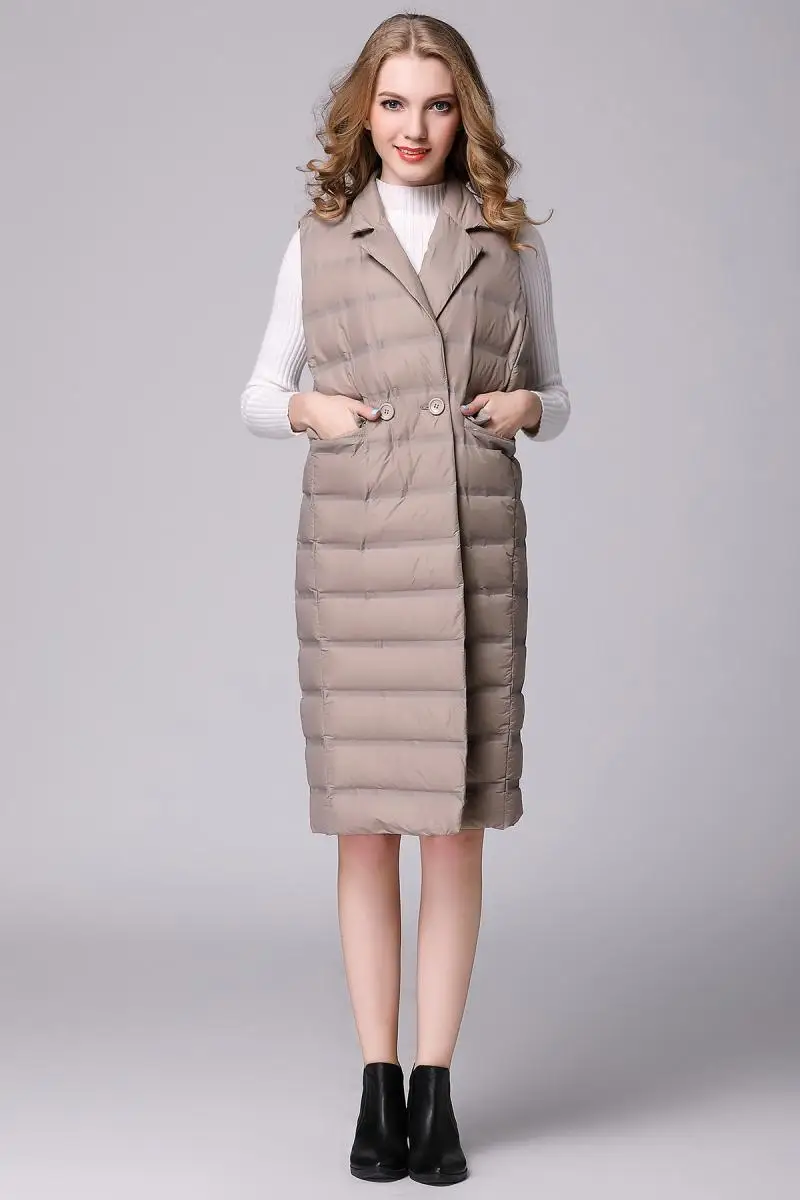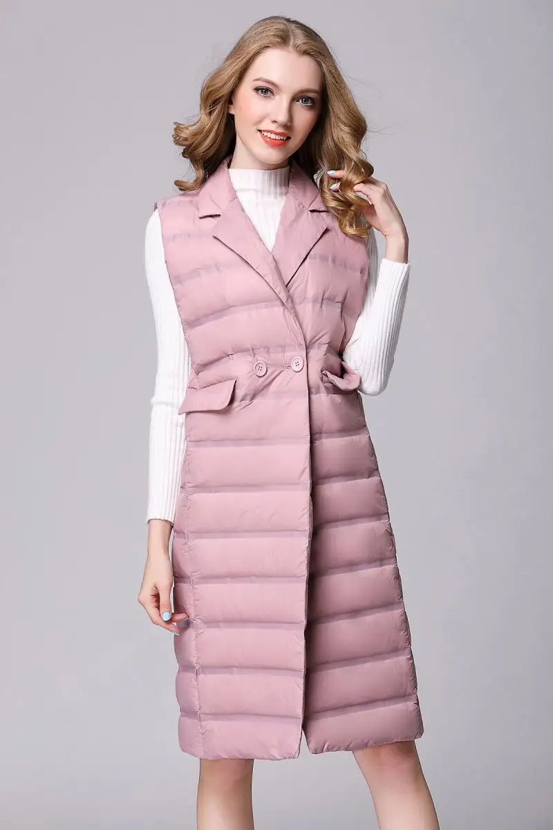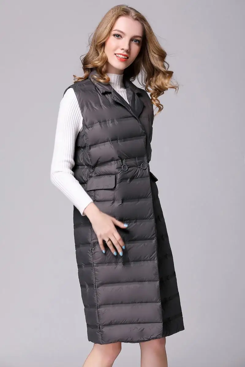 Женский осенне-зимний ультралегкий пуховик на белом утином пуху 2022, женские длинные жилеты, куртка без рукавов с отложным воротником, теплый костюм, жилет