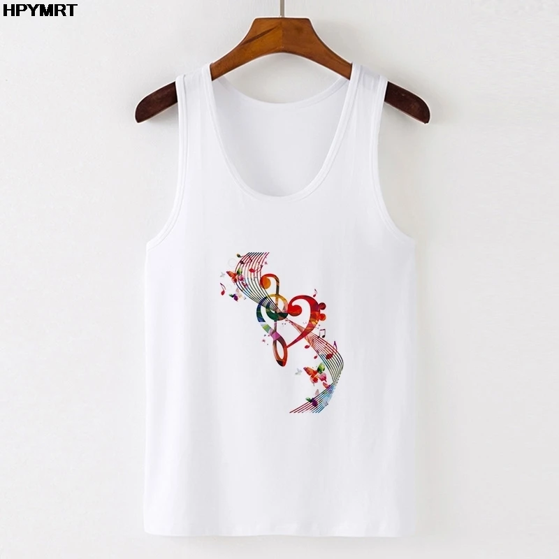 Футболка женская с принтом музыкальных нот, Модный повседневный топ без рукавов, жилет с графикой в стиле Харадзюку, уличная одежда, на лето