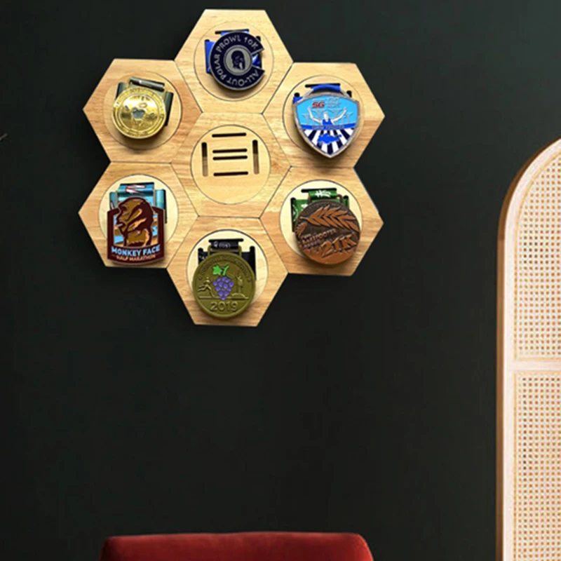 Шестиугольная деревянная, для медали стеллаж для выставки товаров Комбинации медаль Дисплей стенд Свадебные украшения для дома Гостиная Спальня в наличии