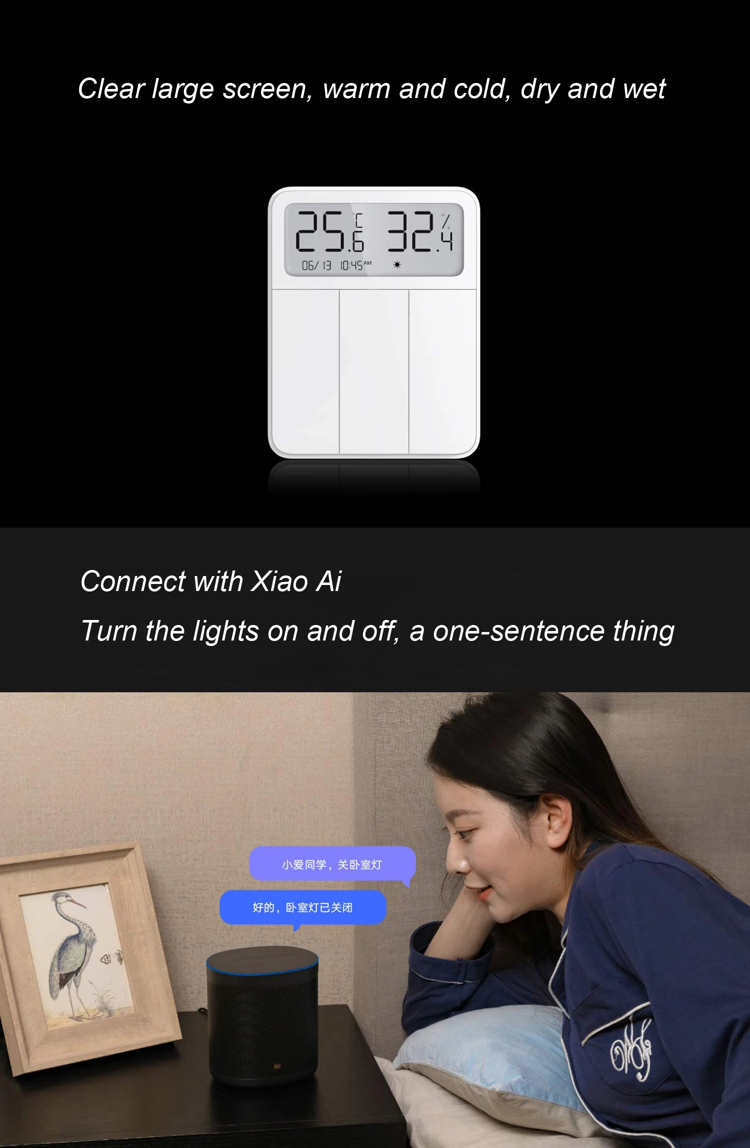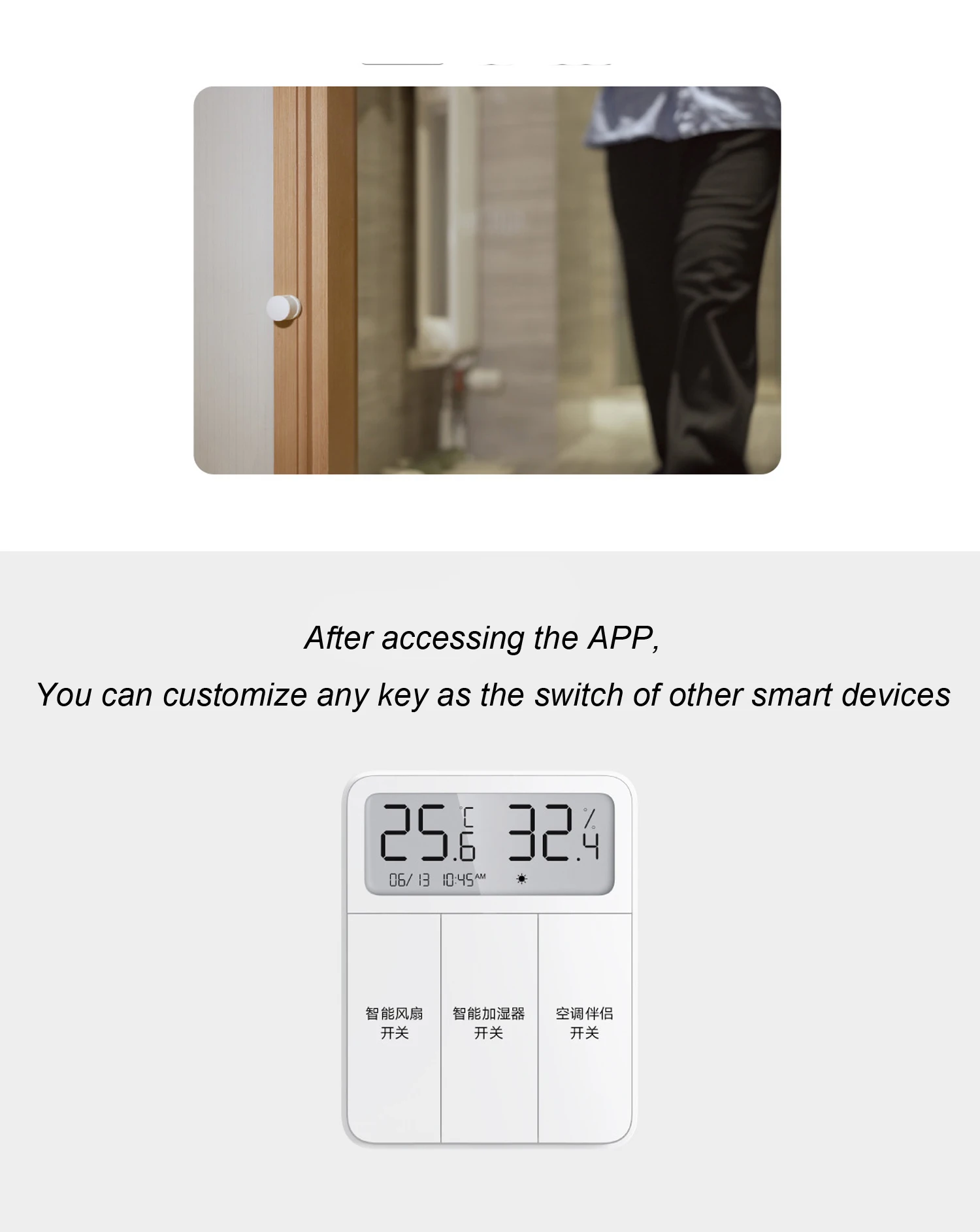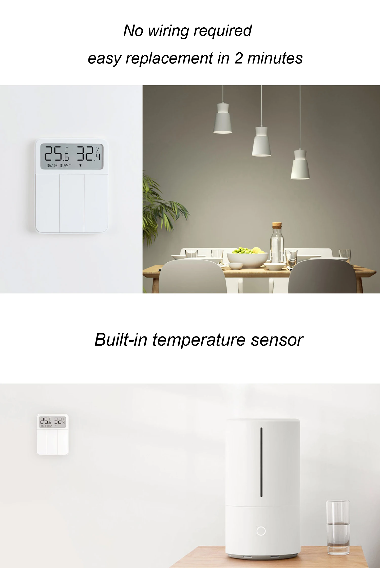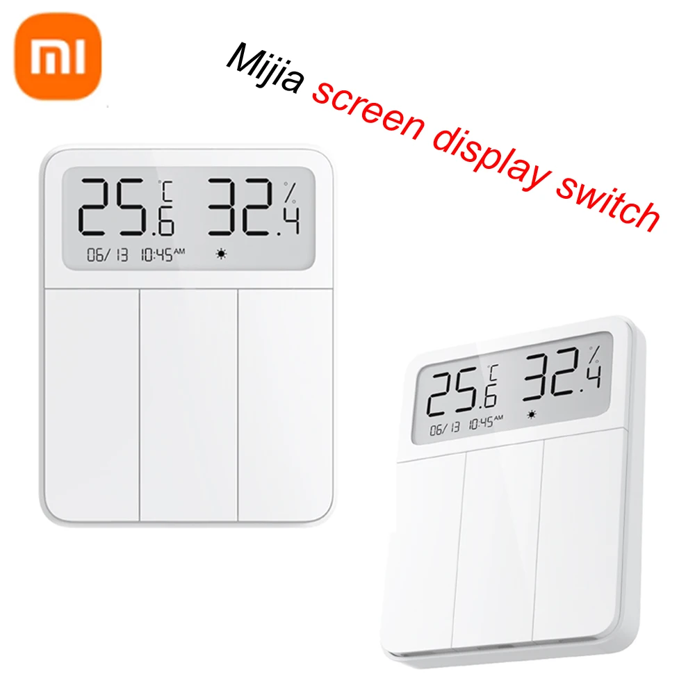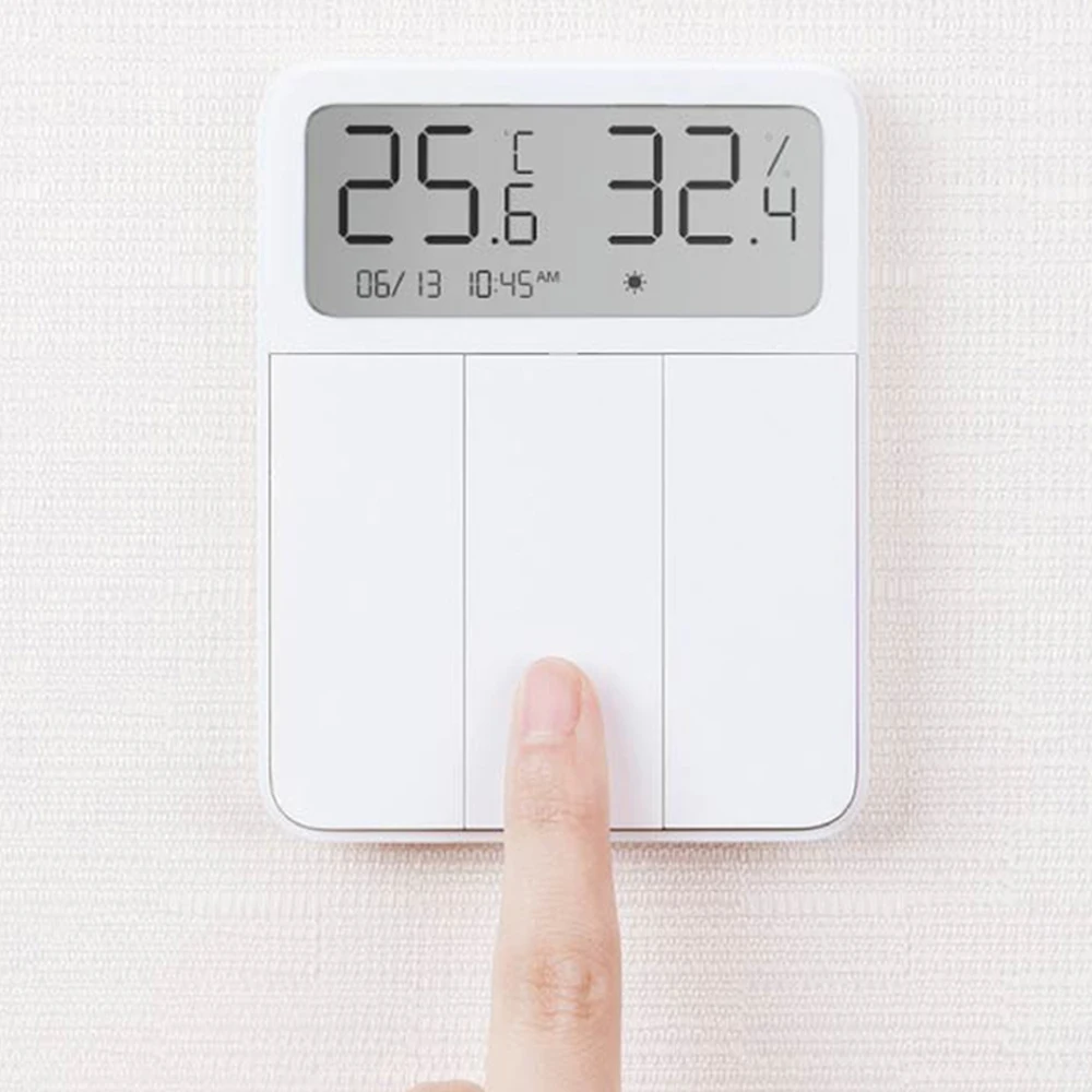 Умный настенный выключатель Xiaomi Mijia, Беспроводной Выключатель с дистанционным управлением, 3 клавишами, ЖК-дисплеем, отображением температуры и влажности