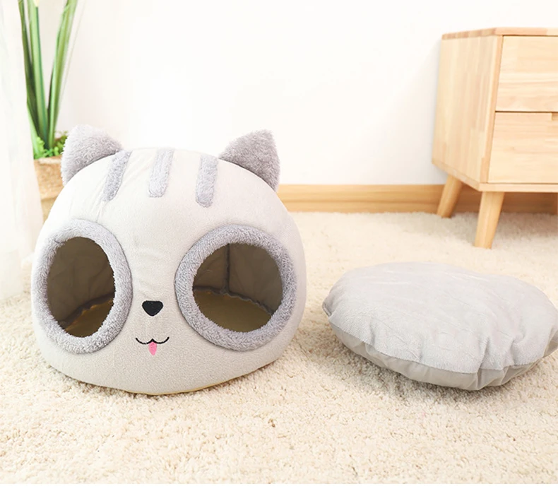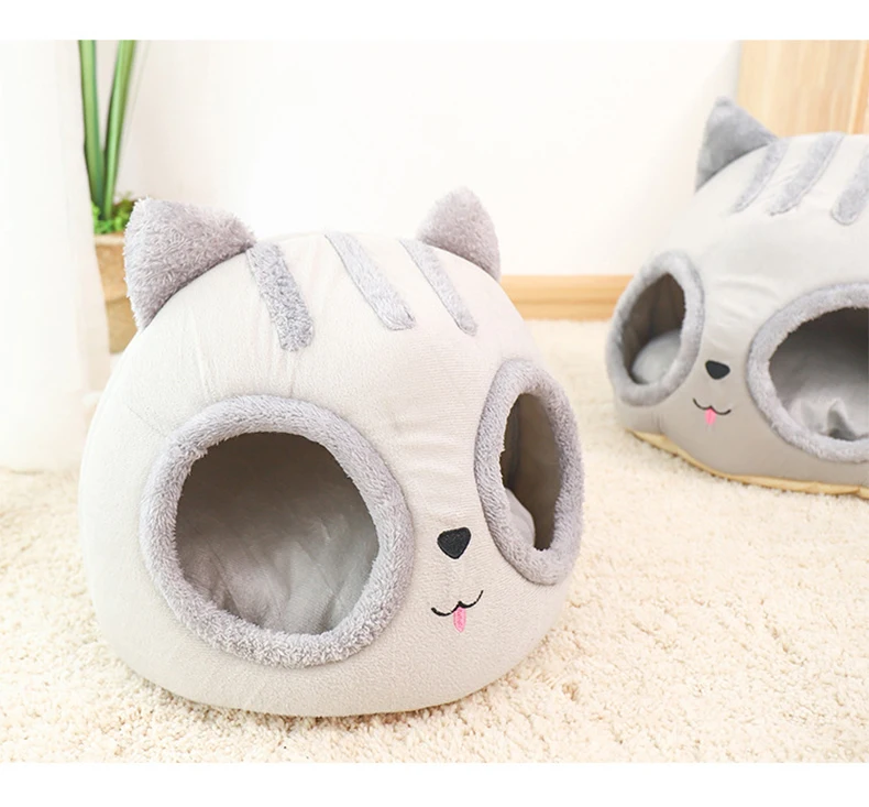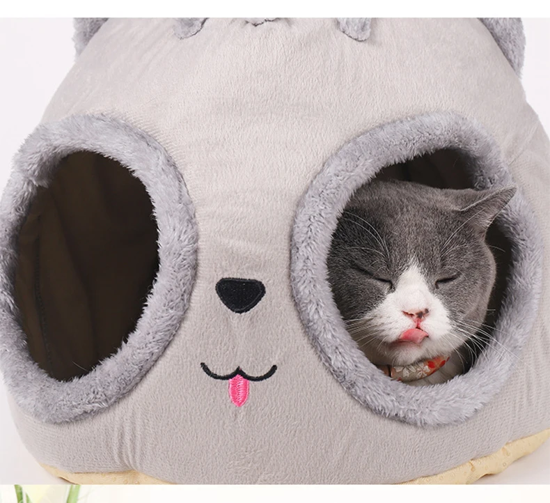 Домик для кошек, мягкая покрытая кровать, в форме головы кота, полу...
