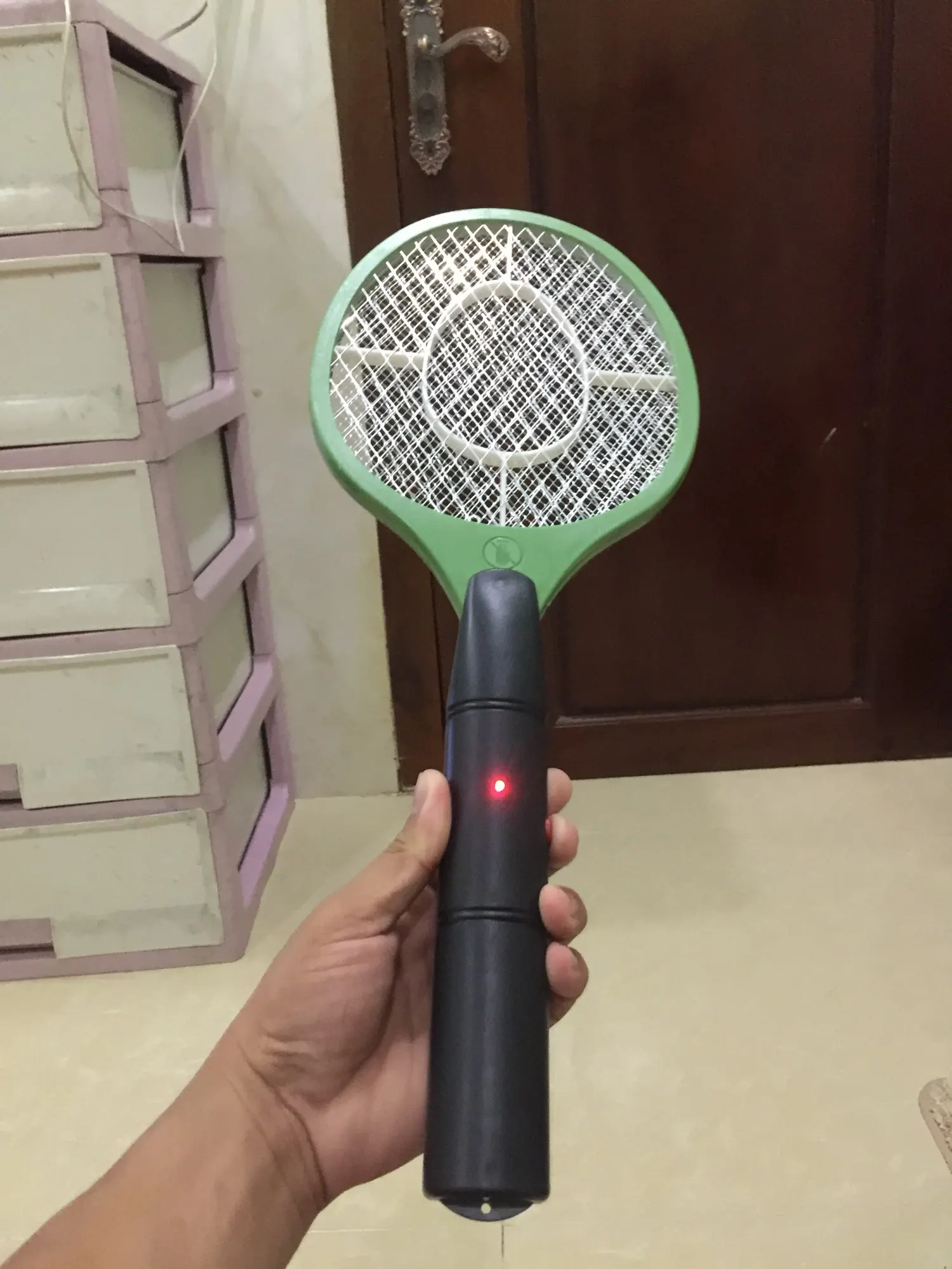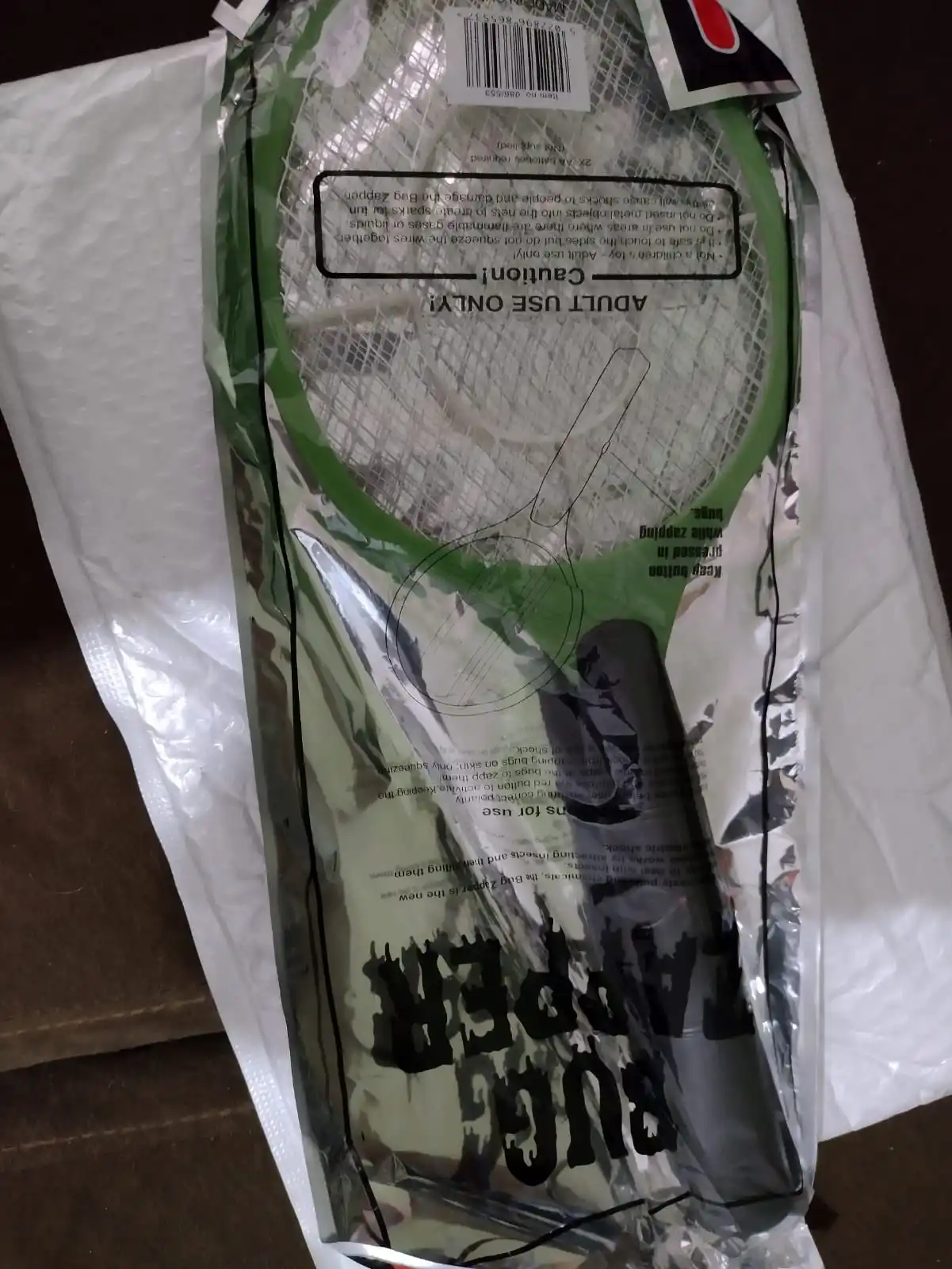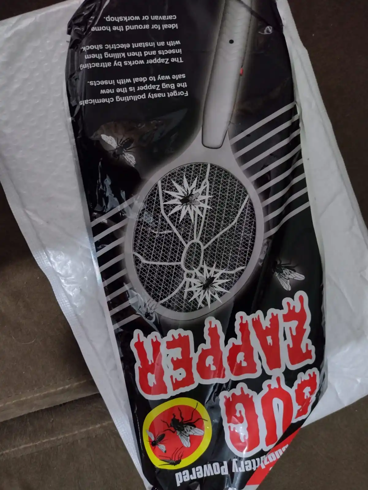 Товар прибыл, как описано в сообщении. Работает на 2 батареях AA. Он не выскакивает, когда убивает комаров, он очень тихий.