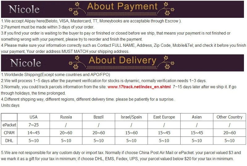 Fast ShippingMore than 150 dollars ship via DHL ,FEDEX ,UPS