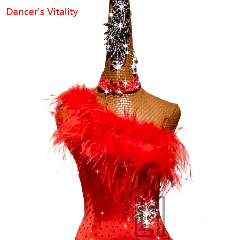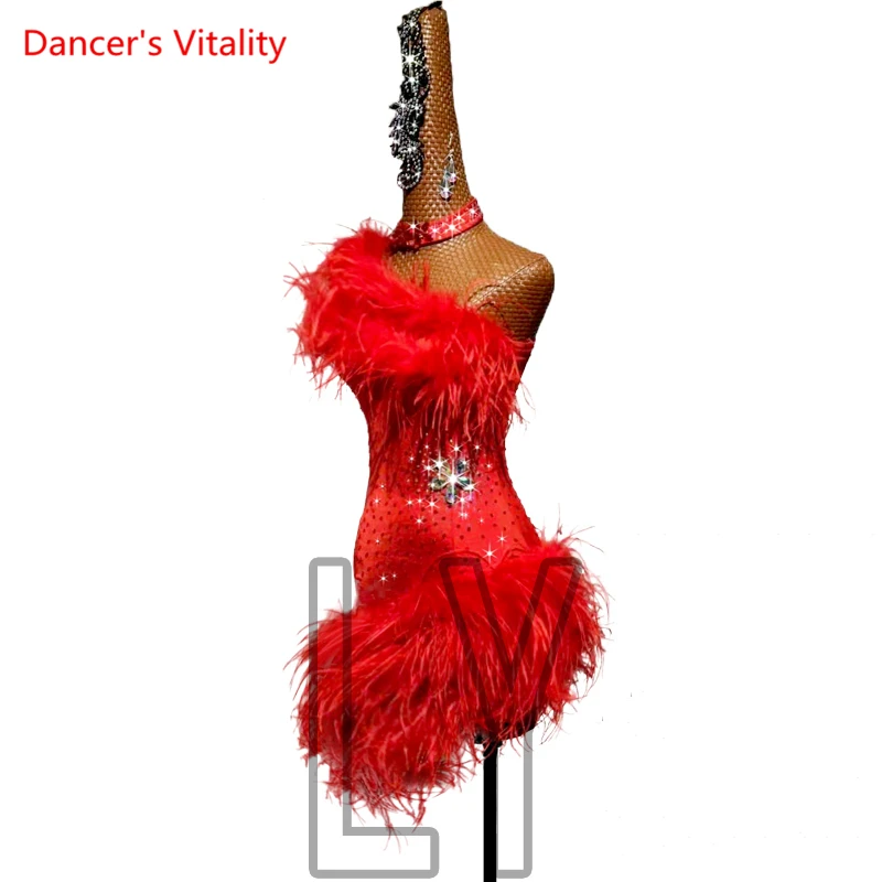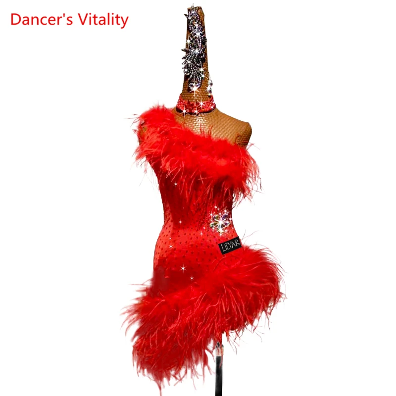 Юбка для латиноамериканских танцев, женская модная пикантная одежда с перьями высокого качества на заказ, одежда для профессиональных выступлений и танцев, тренировочный костюм