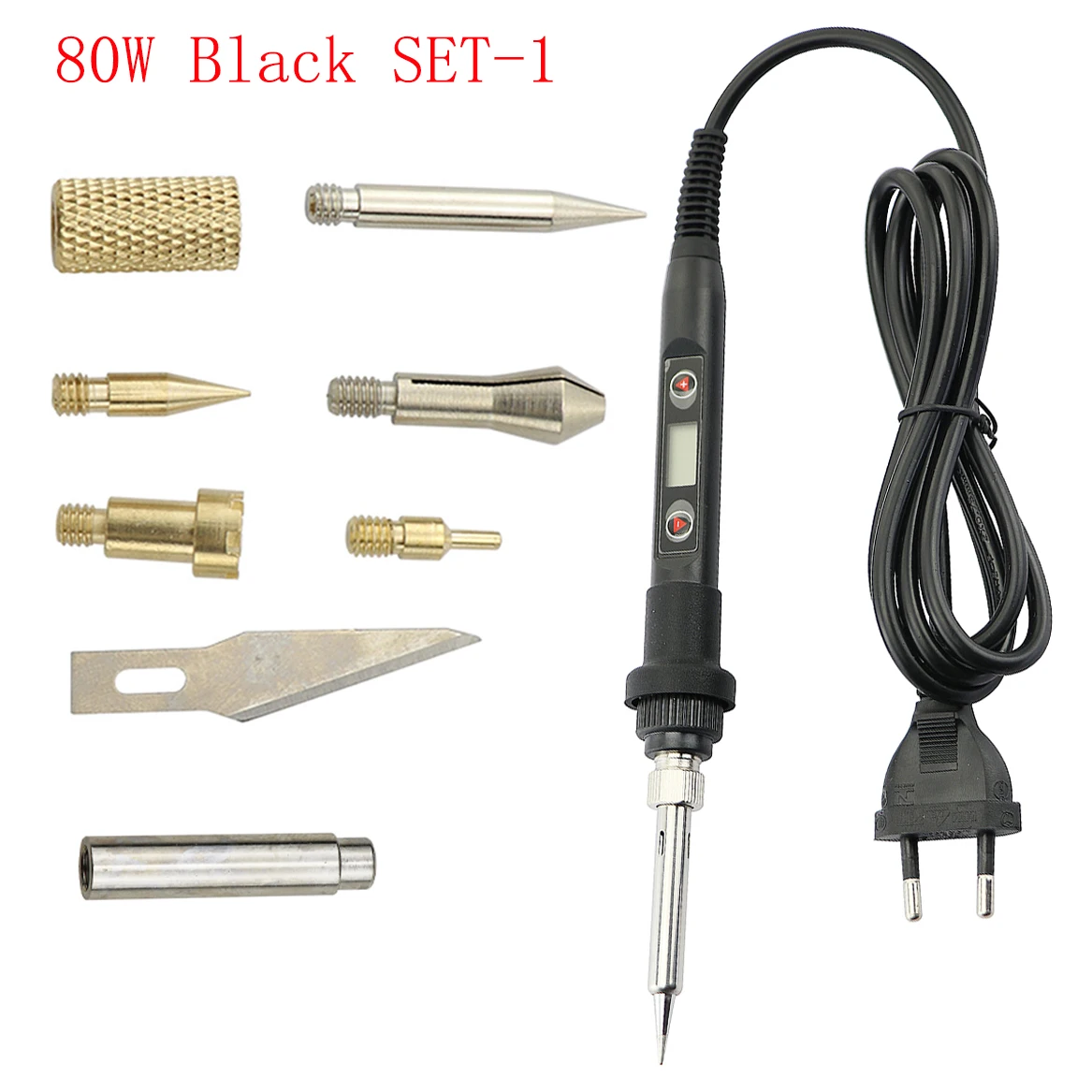 Пирографический набор для резьбы по дереву 7 в 1, ручка 60 Вт80 Вт, паяльник с регулируемой температурой, набор ручных инструментов