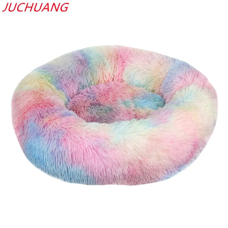Большой Домик для питомца Tie Dye Fuzzy круглые плюшевые, кровать для кошки, мягкая, длинная, плюшевая, теплая, спальный, для кошки, коврик, домик для кошки