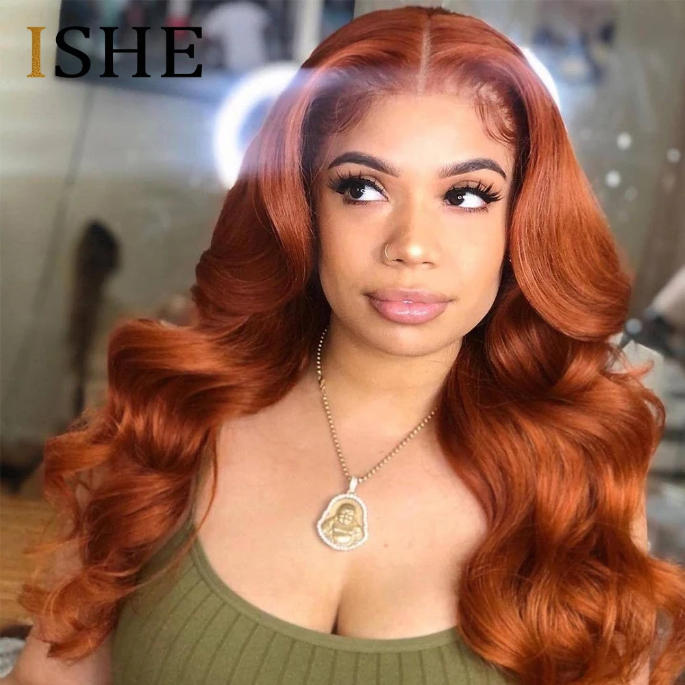 Парики женские из натуральных бразильских волос, 13 х4, оранжевого, имбирного цвета, на шнуровке спереди, с предварительно выщипанными волосами
