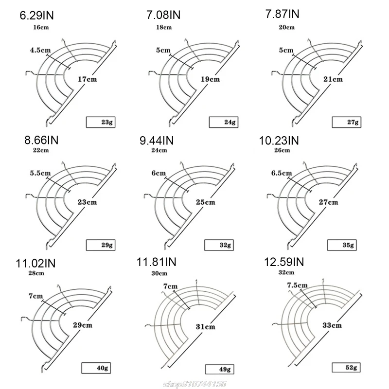 Характеристики:Материал: нержавеющая стальДополнительные стили: #16, #18, #20, #22, #24, #26, #28, #30, #32Стиль № 16 Размер: 17 см/6,69 дюймаСтиль № 18 Размер: см/7,48 дюймаСтиль #20 размер: 21 см/8,27 дюймаСтиль № 22 размер: 23 см/9,06 дюймаСтиль № 24 Размер: 25 см/9,84 дюймаСтиль #26 размер: 26 см/10,24 дюймаСтиль № 28 Размер: 29 смСтиль #30 Размер: смСтиль № 32 Размер: 33 смЦвет: серебристыйКоличество: 1 шт.