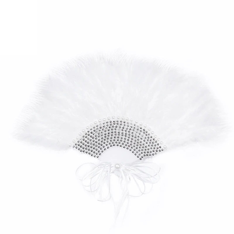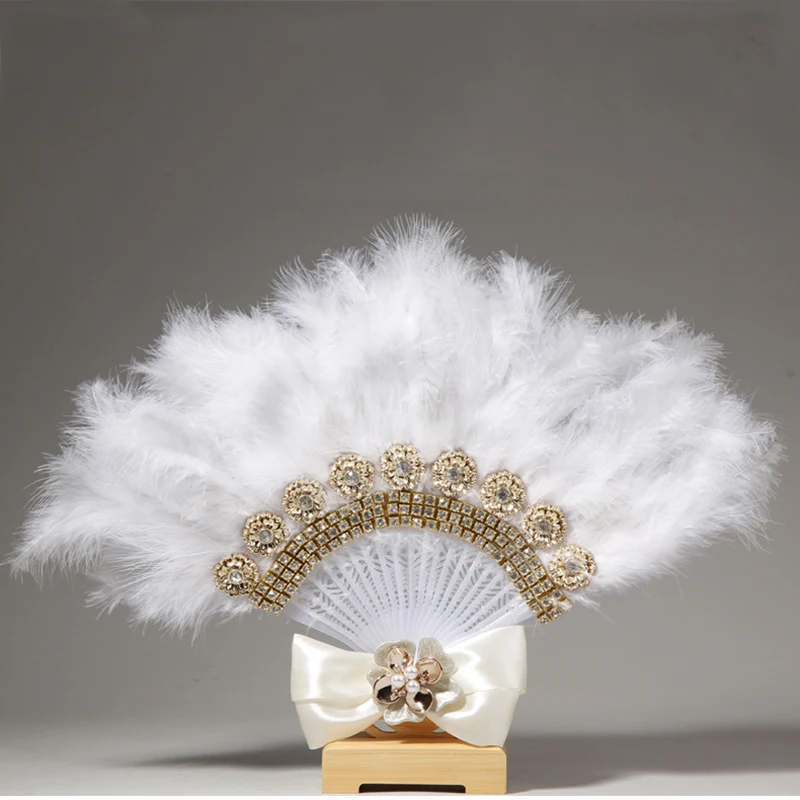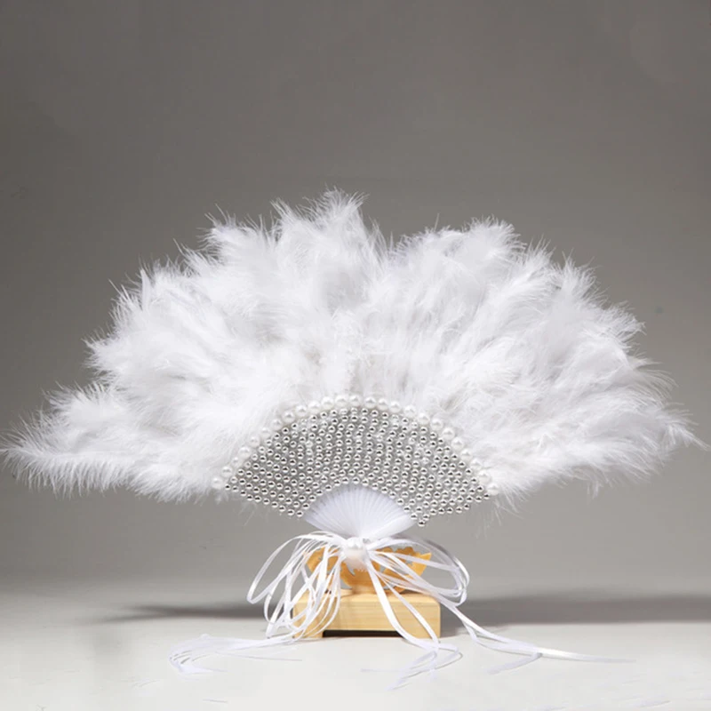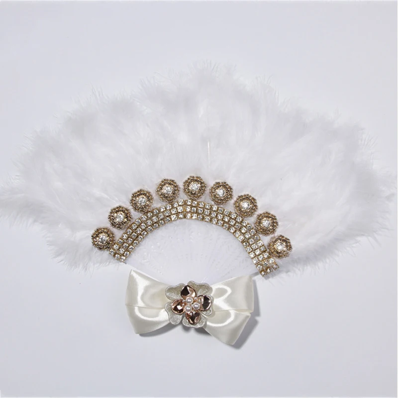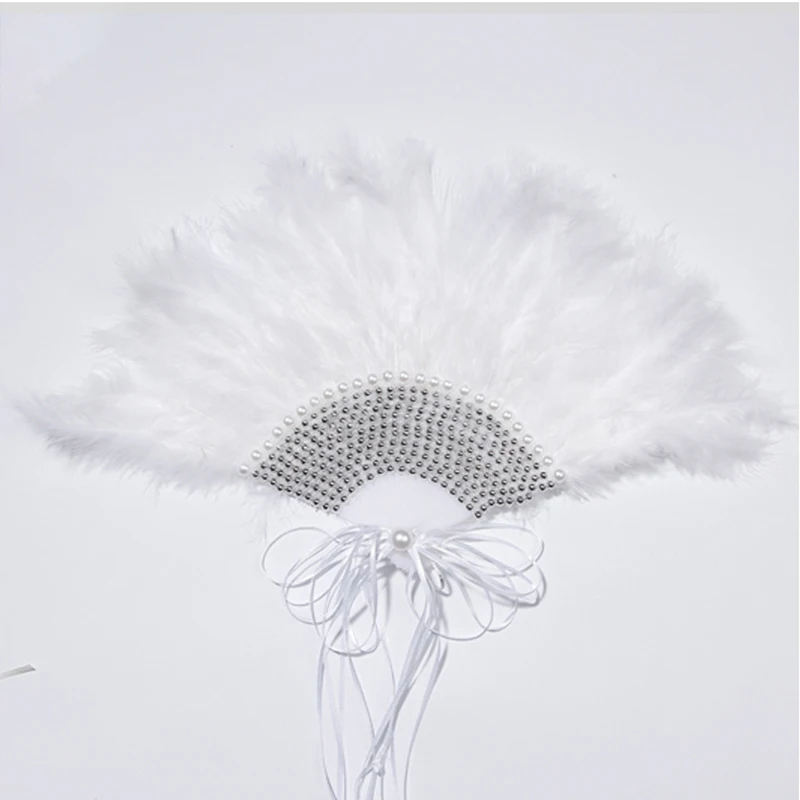 Свадебный веер ручной работы, портативный, с перьями, белый, свадебные Фанаты