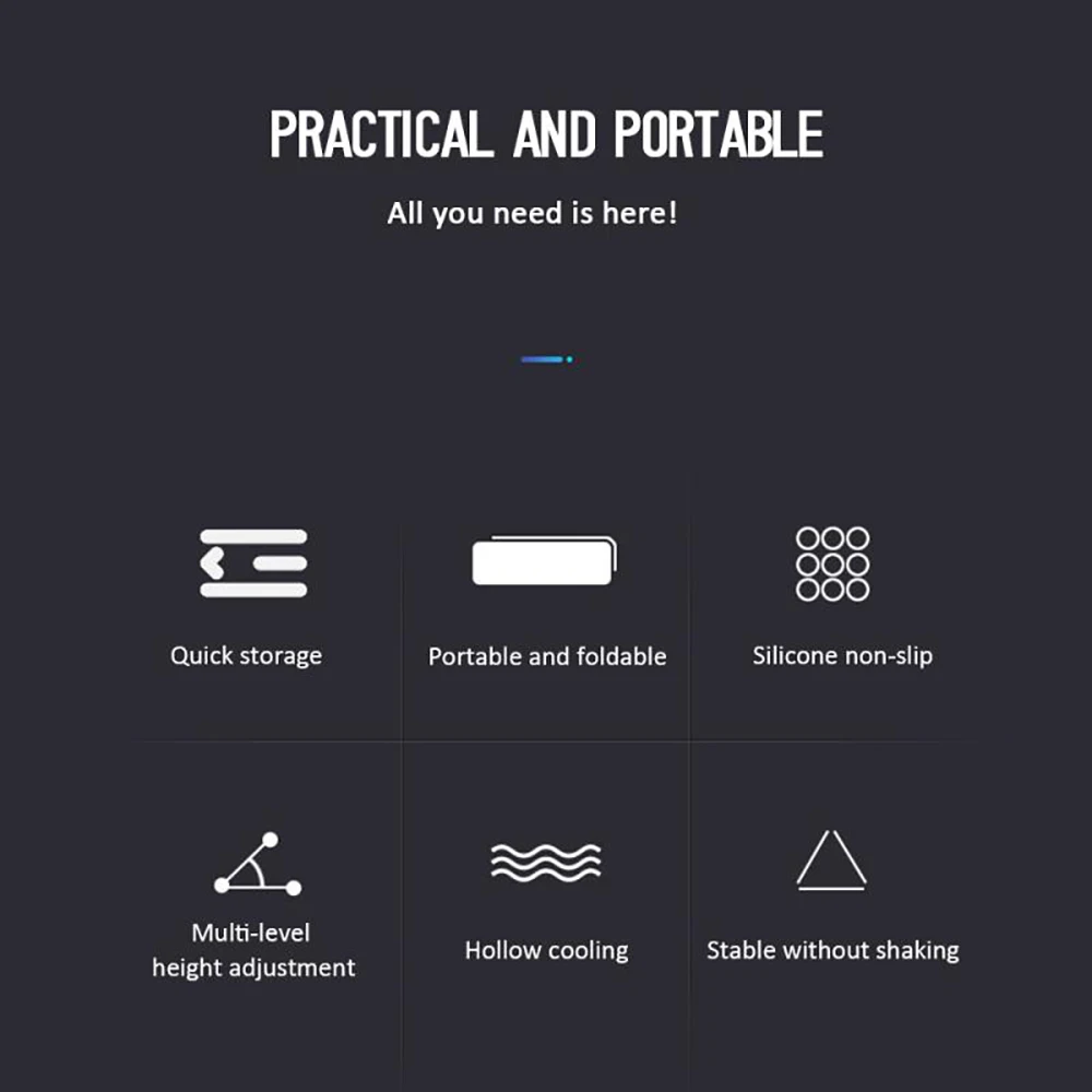 -Быстрое хранение-Портативный и складной-Силиконовая Нескользящая-Многоуровневая регулировка высоты-Полое охлаждение-Стабильная и тряска