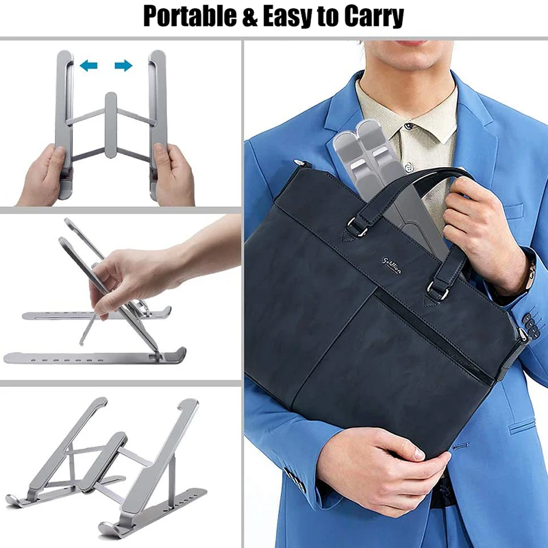 Наш держатель ноутбука обеспечивает 7 уровней регулируемой высоты. Регулировка комфортного угла эксплуатации и высоты на основе ваших реальных потребностей. Подставка для ноутбука может быть сложена и поставляется с портативной сумкой для хранения, чтобы легко носить с собой.