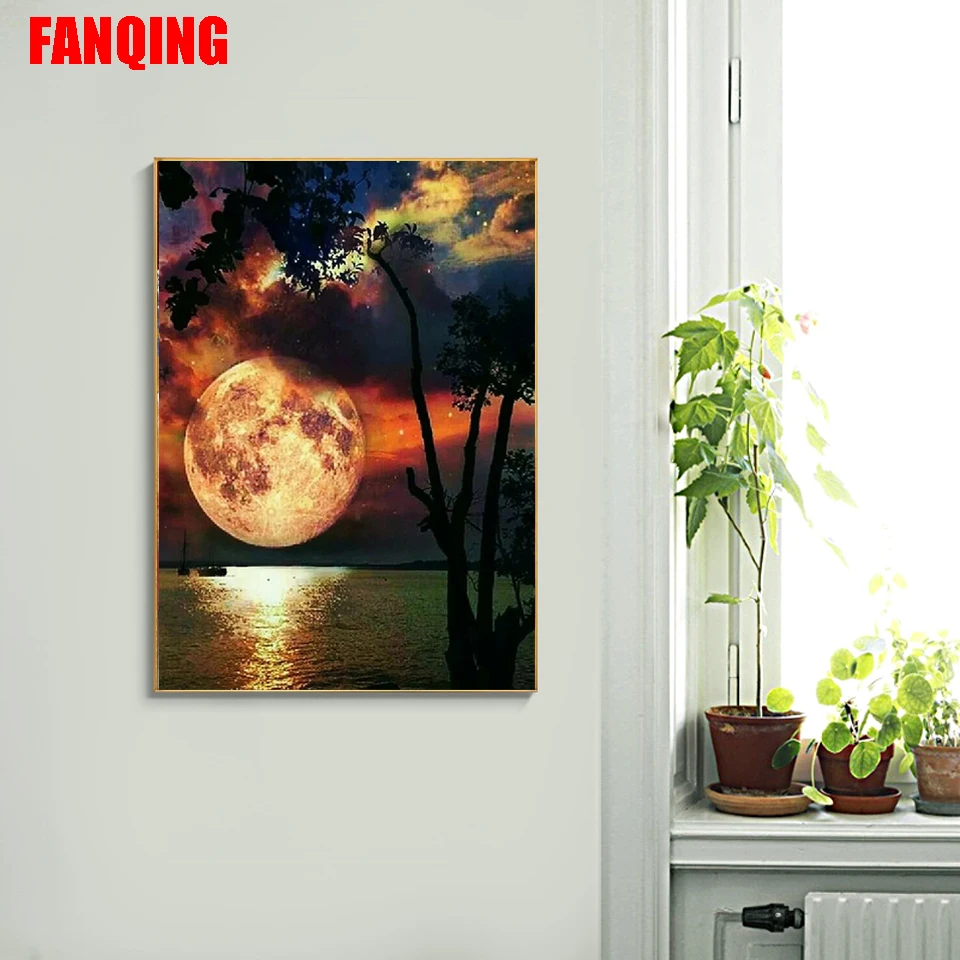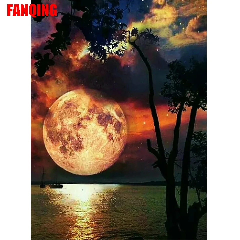 5D алмазная живопись сделай сам, пейзаж, полная луна, алмазная вышивка, искусство, картина, полная квадратнаякруглая стразы, украшение для дома, подарок