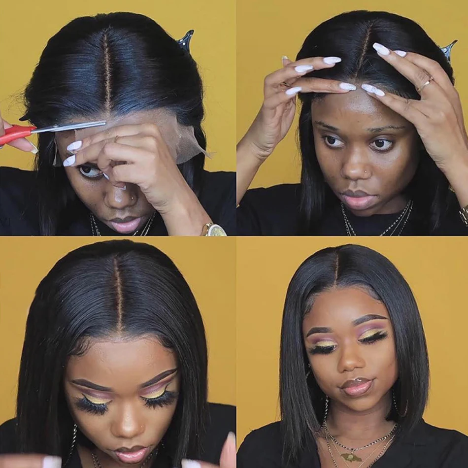 Парик Короткий Боб, парики из прямых человеческих волос с косточкам...