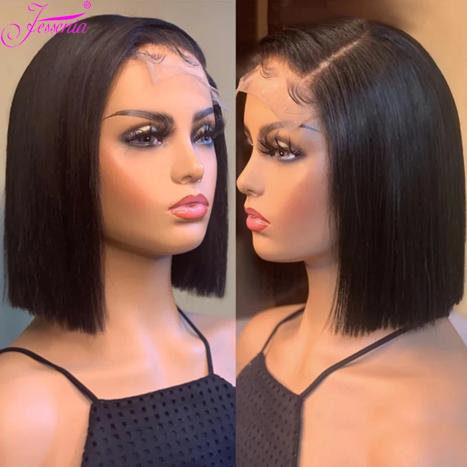 13х4 парик с кружевным Бобом, короткие бразильские прямые дешевые ч...