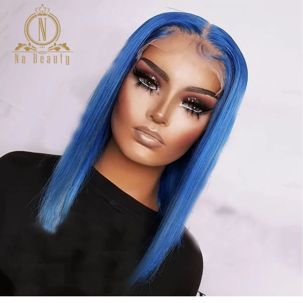 613 цветов ed человеческие волосы парик прямой Омбре серый синий цвет короткий Боб прозрачные кружевные парики для женщин Nabeauty 180 плотность