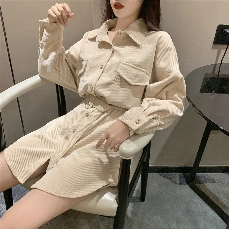 Женская Вельветовая рубашка с отложным воротником и длинным рукавом...