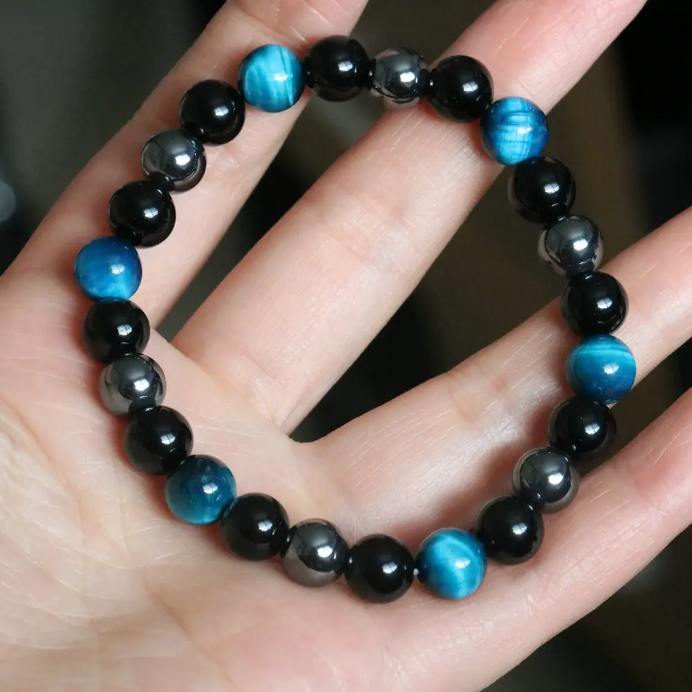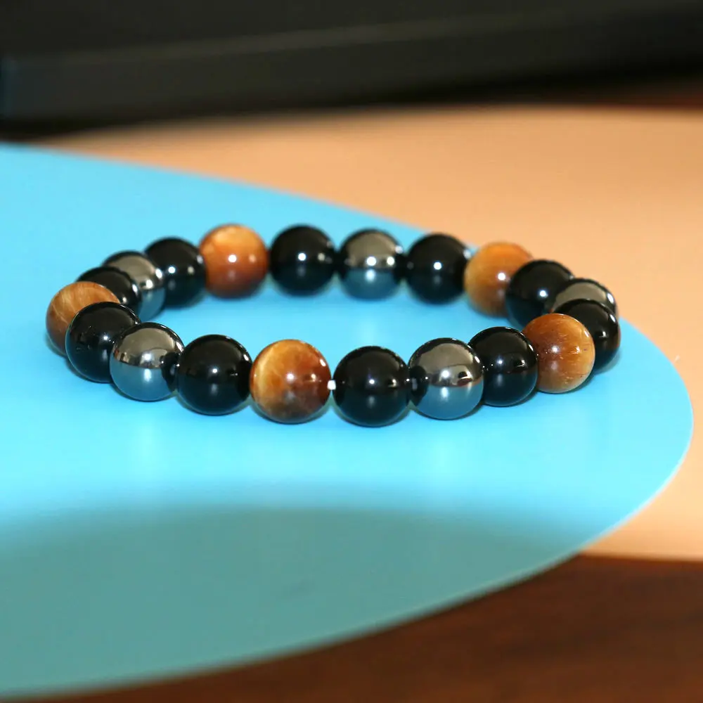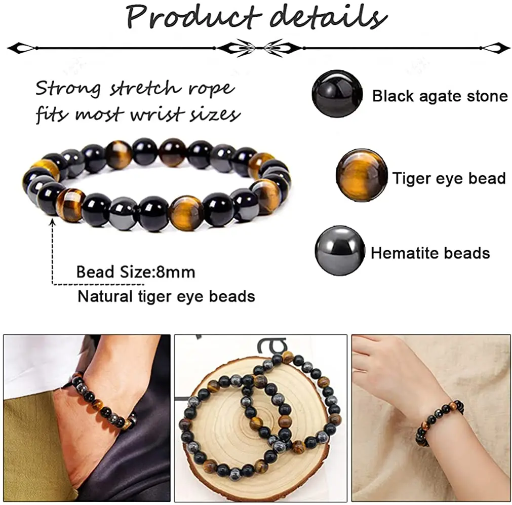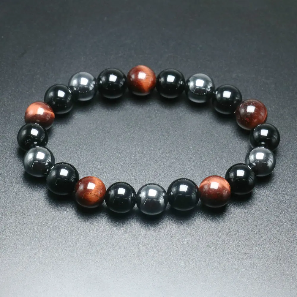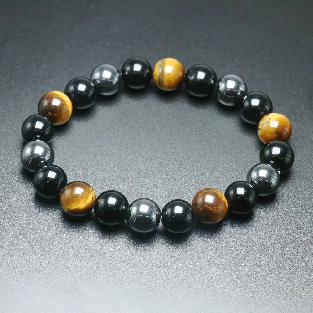 Мужской, женский, мужской браслет с тройной защитой, обсидиановый гематит, тигровый глаз, браслет с бусинами, мужские украшения, приносят удачу и процветание