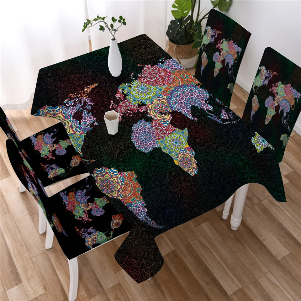 Черная Водонепроницаемая прямоугольная скатерть с картой мира, скатерть для вечерние ринки, свадьбы, декоративное покрытие для стола, журнальный столик для гостиной