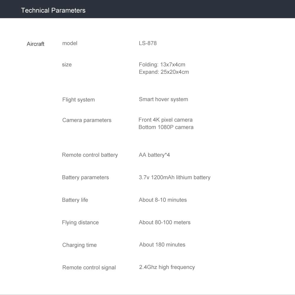 Дрон LS878, двойная камера 4K HD, Fpv, Wifi, режим удержания высоты...
